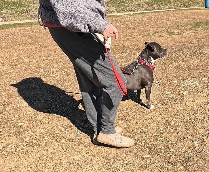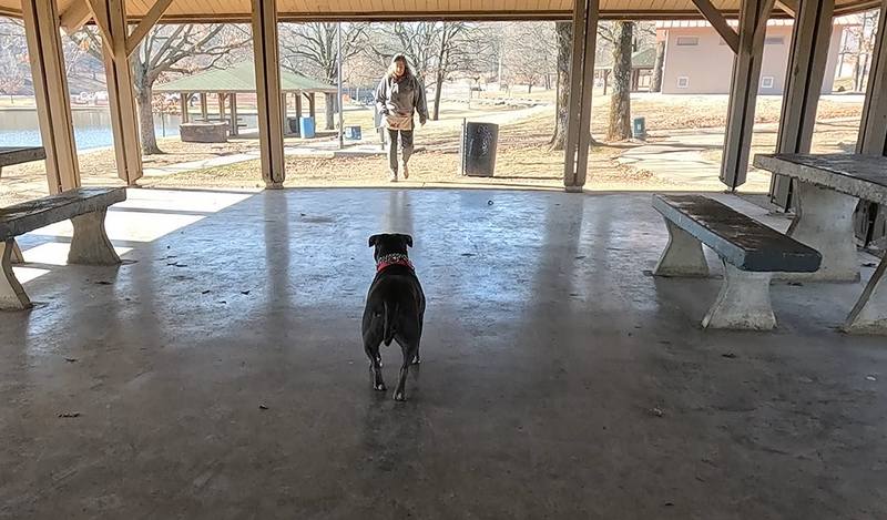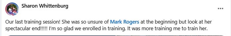 By the time we had finished the training course, Silver owned the area. Confident, easily approaching and being approached by me, walking happily with her head up, tail wagging. A victory of a transformation for this team. See the video at bottom.