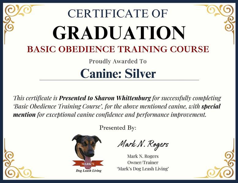 When Sharon brought ‘Silver’ to me, she had given me a good description of the dog’s unique characteristics and behavior. When the dog first came on the scene to begin Basic Obedience, she was a quivering, nervous wreck. She tensed up every time I got anywhere near her.
