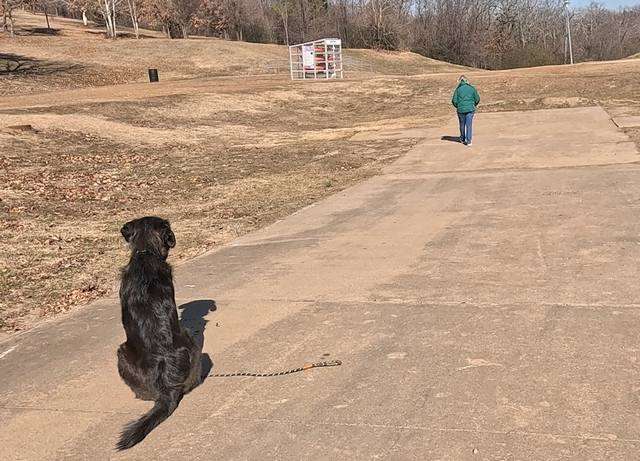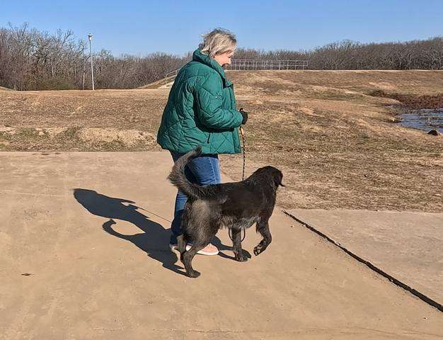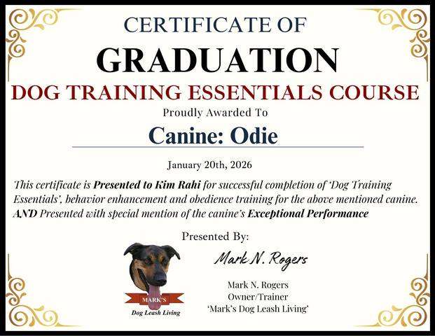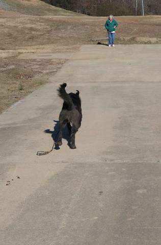 Odie aces a long leash ‘Proximity Walk’ with his owner never touching the leash.